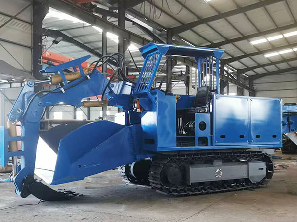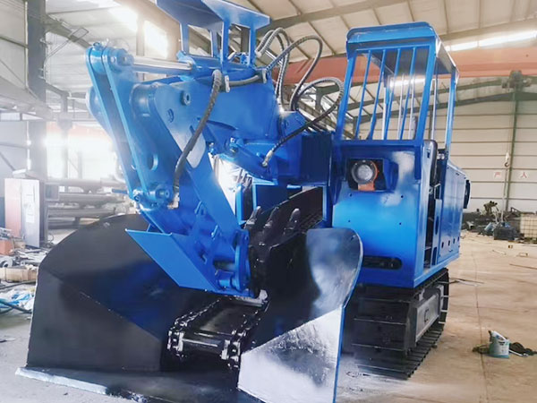 本機(jī)靠推進(jìn)鏟取巖石并通過鏟斗將石料扒進(jìn)自身的刮板輸送機(jī),輸送機(jī)從尾部將巖石卸入側(cè)卸式礦車、箕斗、皮帶機(jī)、梭式礦車、自卸汽車等其它轉(zhuǎn)載設(shè)備上去。同時(shí)可利用反鏟挖掘臂扒取遠(yuǎn)處的巖石,也可以用鏟斗來清理工作面和斷面排險(xiǎn)、掏水溝。